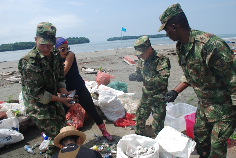Gemeinsam mit Ecopazifico, Plástico Infinito und vielen tollen motivierten Helfern haben wir 2,5 Tonnen Plastikmüll eingesammelt. Als Ehrengast war das kolumbianische Militär am Start und half uns bei der Arbeit. Die Nachricht verbreitete sich wie ein Lauffeuer in allen Medien.